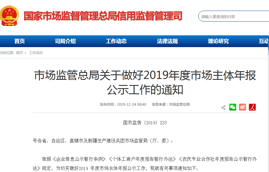 1 市场监管总局关于做好2019年度市场主体年报公示工作的通知 号各省、自治区、直辖市及新疆生产建设兵团市场监管局(厅、委):